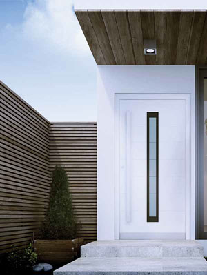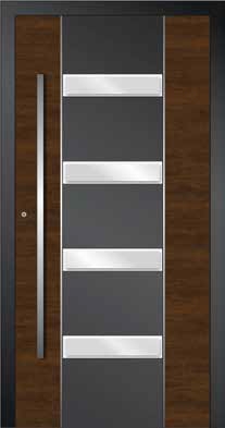 Paneeltüren richten sich an besonders anspruchsvolle Kunden. Mit ihren modernen technischen Lösungen und ihrem Design sind sie nicht nur ein funktionaler und langlebiger Eingang des Hauses – sondern auch seine „Visitenkarte“. Solide Konstruktion Die Konstruktion basiert auf dem System MB-86, dem technisch derzeit modernsten Türsystem im ALUPROF-Sortiment, das aus wärmegedämmten Aluminiumprofilen besteht. Das Flügelprofil ist darauf ausgelegt, mit speziellen Füllungen verbunden zu werden, die auf der Außenseite flächenbündig mit dem Rahmen sind. Die Füllungen können ein- oder beidseitig auf die tragenden Profile des Türblatts geklebt werden. Durch die Möglichkeit, versteckte Türbänder zu verwenden, wird der ästhetische Eindruck dieser Tür noch gesteigert. Modernität, Stil und perfekte Optik für viele Jahre Die Füllungspaneele sind in vielen Mustern und Farben verfügbar. Bei der Produktion können verschiedenartige Fräsungen und dekorative Applikationen aufgebracht werden, auch die Verwendung von Isolierglas ist möglich – so ergeben sich unzählige Varianten und Kombinationsmöglichkeiten. Damit lassen sich die Türen sowohl an moderne Häuser als auch an klassische Architektur optimal anpassen. In jedem Fall sorgen sie für ein ästhetisch ansprechendes „Eingangserlebnis“ – sie fallen ins Auge und geben dem Eingangsbereich einen ganz besonderen Charme. Die Türfüllungen sind aus robusten, witterungsbeständigen Materialien gefertigt. Die außenliegenden Elemente sind zudem meist mit einer Speziallackierung oder einer Epoxydharzbeschichtung versehen; so behalten die Paneele viele Jahre lang ihr repräsentatives Aussehen. Sie können auch mit einzigartigen Teflonfarben von Finea beschichtet werden, welche die Schmutzhaftung auf ein Minimum reduzieren. |